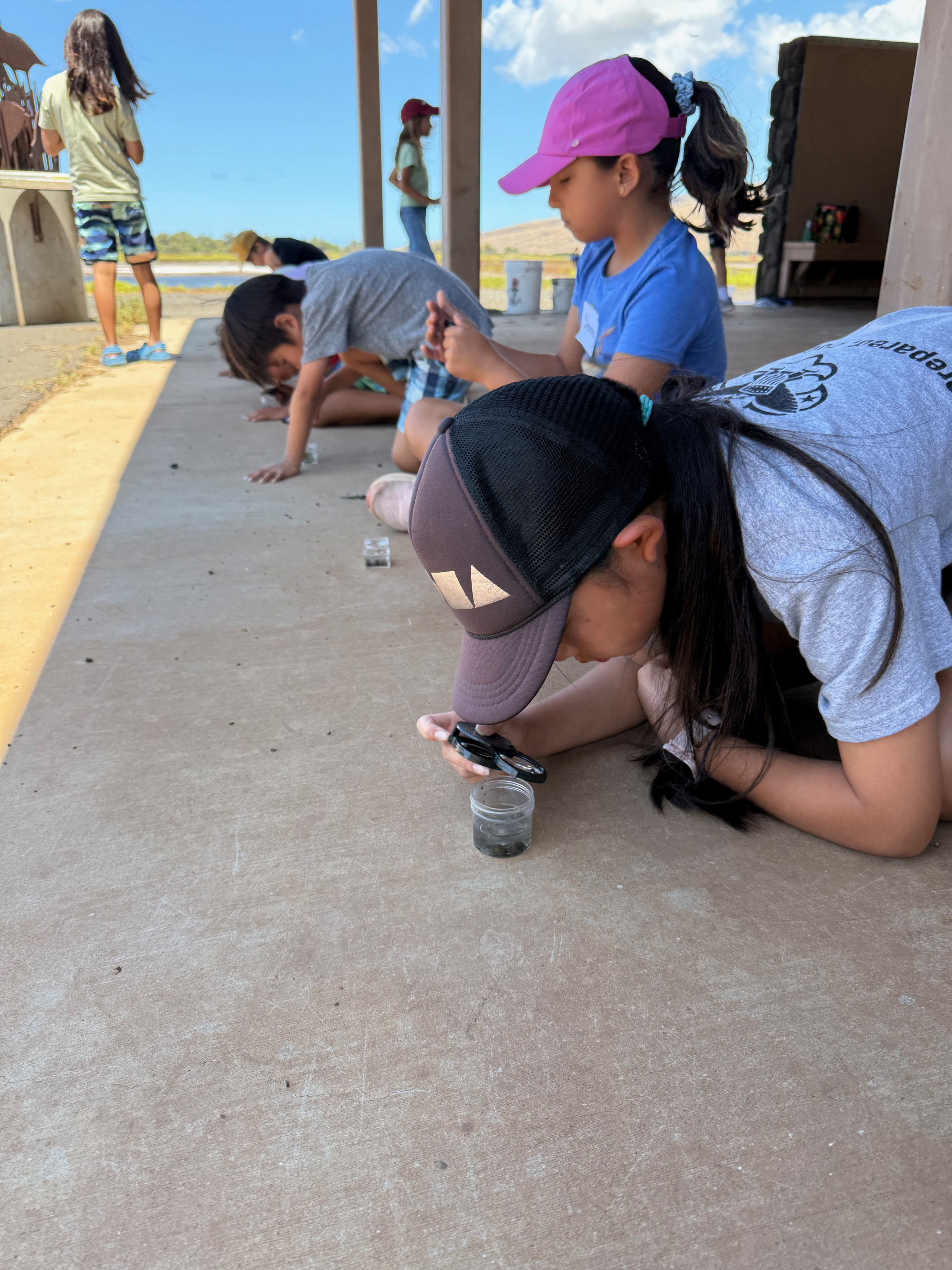 Camp participants learned how to use tools that biologists use such as hand lenses to closely view aquatic invertebrates living in the wetland