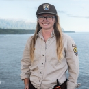 Laurel Smith, smiling in uniform, at Kīlauea Point National Wildlife Refuge in Hawaii. Photo Credit: Angela Iwai-Pineda