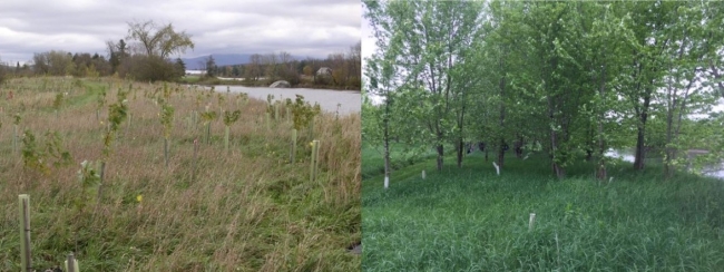 LCFWCO - Riparian restoration planting just after planting and 12 years later.