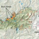 Map of Little Pend Oreille National Wildlife Refuge showing three areas in the northwest corner of the refuge identified for prescribe burns in spring 2023.