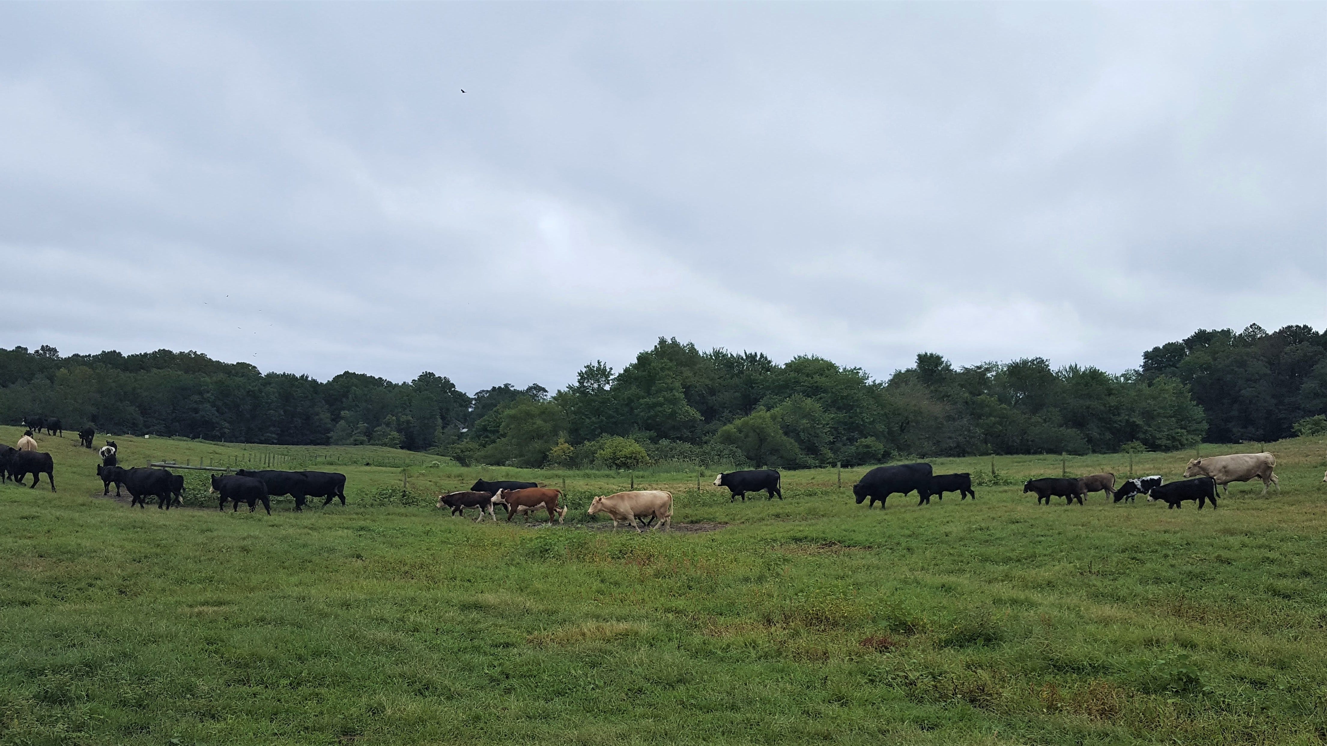 Temporary livestock fencing on a New Jersey farm supports rotational grazing.