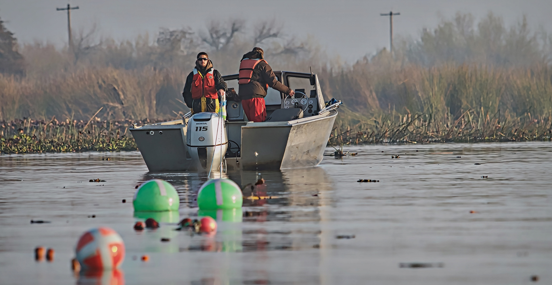 Biologists from the Lodi Fish and Wildlife Office look for Delta smelt in the Sacramento-San Joaquin River Delta in 2017.