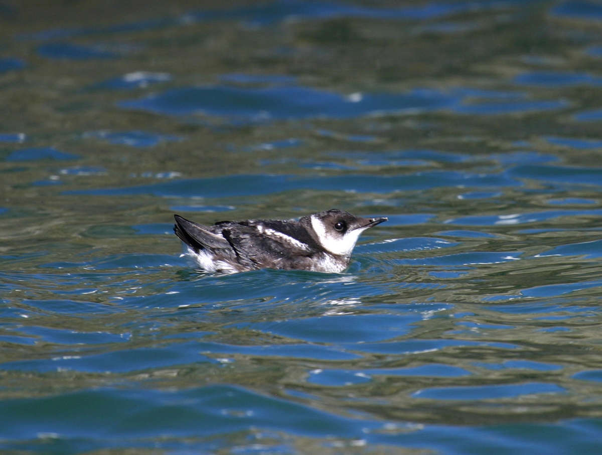 A marbled murrelet floats on the water. Image taken from USFWS Pacific Region Flickr page.