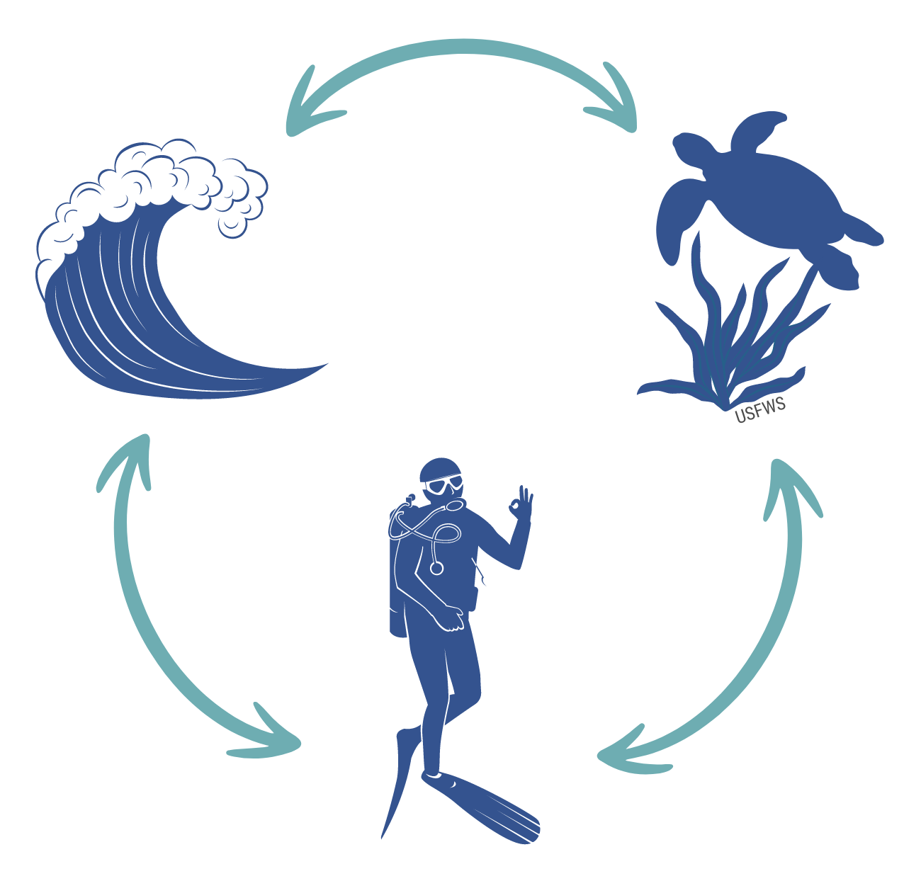 The health of sea turtles, humans, and ocean ecosystems are interconnected and interdependent.
