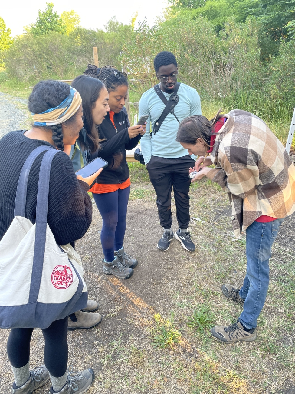 Mike Hudson (BUrB) shows participants a brood patch on a tree swallow