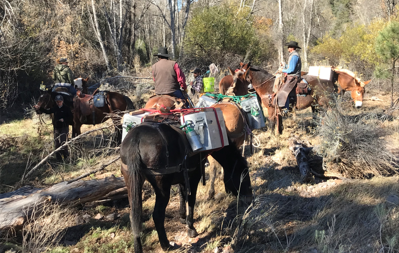 Mule train hauling Gila trout
