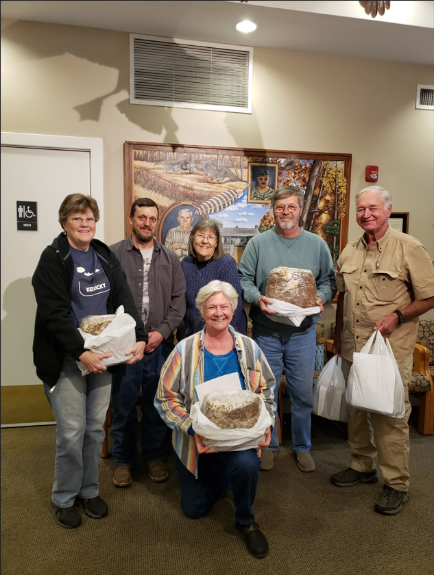 Some of the participants of the 2024 Culinary Mushroom Grow Bag Workshop posing with their grow bags and instructor, Eric Sanders.