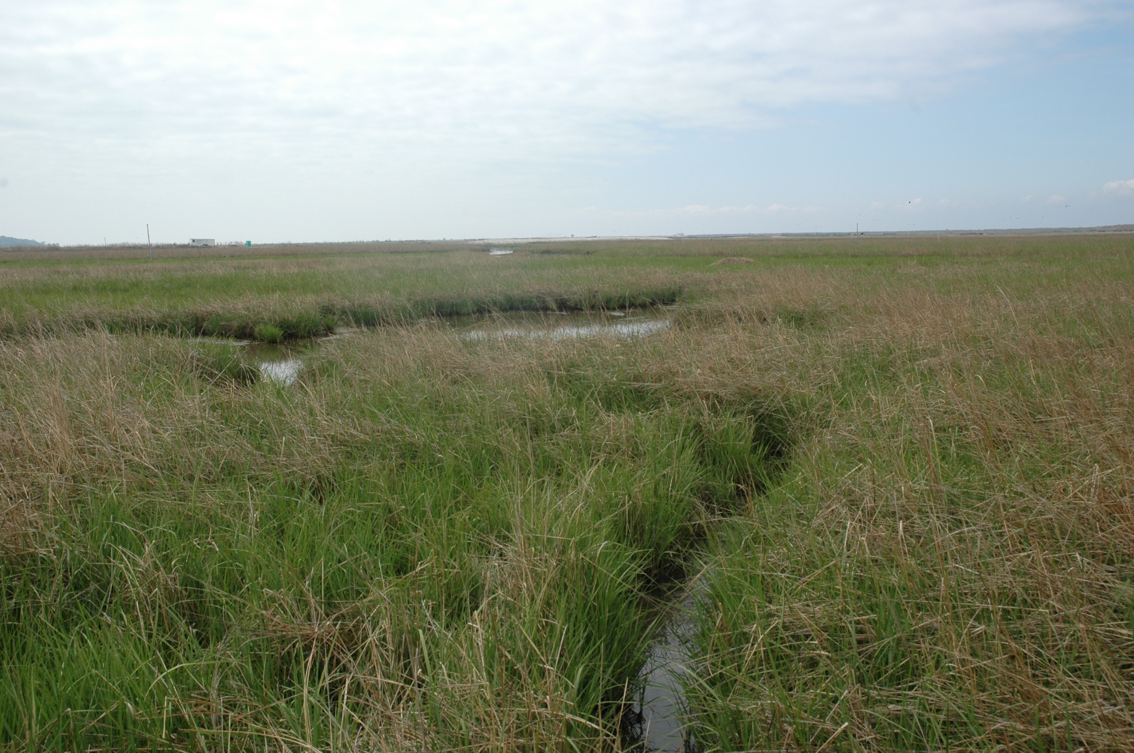 Muskrat lead draining salt marsh