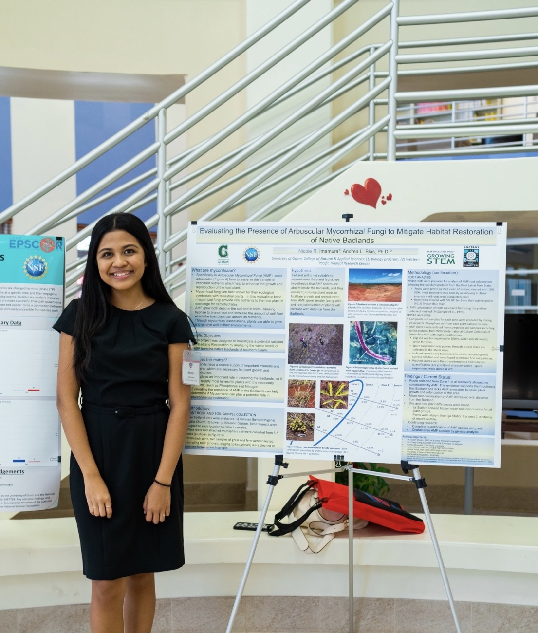 Nikki Imamura presents her first research project with the National Science Foundation's Eddie Bernice Johnson Inclusion across the Nation of Communities of Learners of Underrepresented Discoverers in Engineering and Science (INCLUDES) Initiative, which sought ways to incorporate the use of mycorrhizal fungi in mitigating habitat restoration, January 24, 2020. Photo by Nikki Imamura.