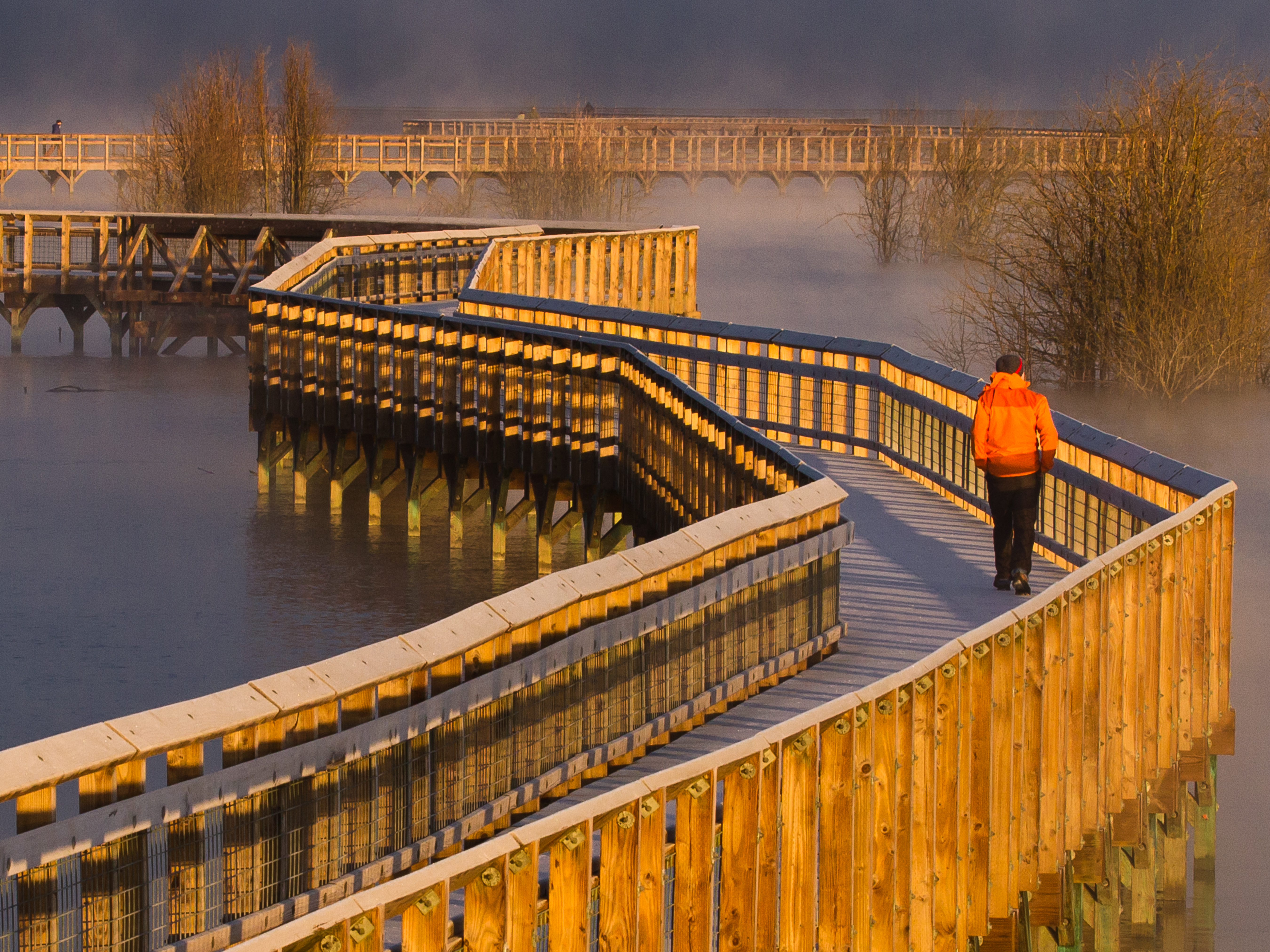 At Billy Frank Jr. Nisqually National Wildlife Refuge, a walk on the boardwalk leads visitors out and over the Nisqually estuary for views that vary with the tide.