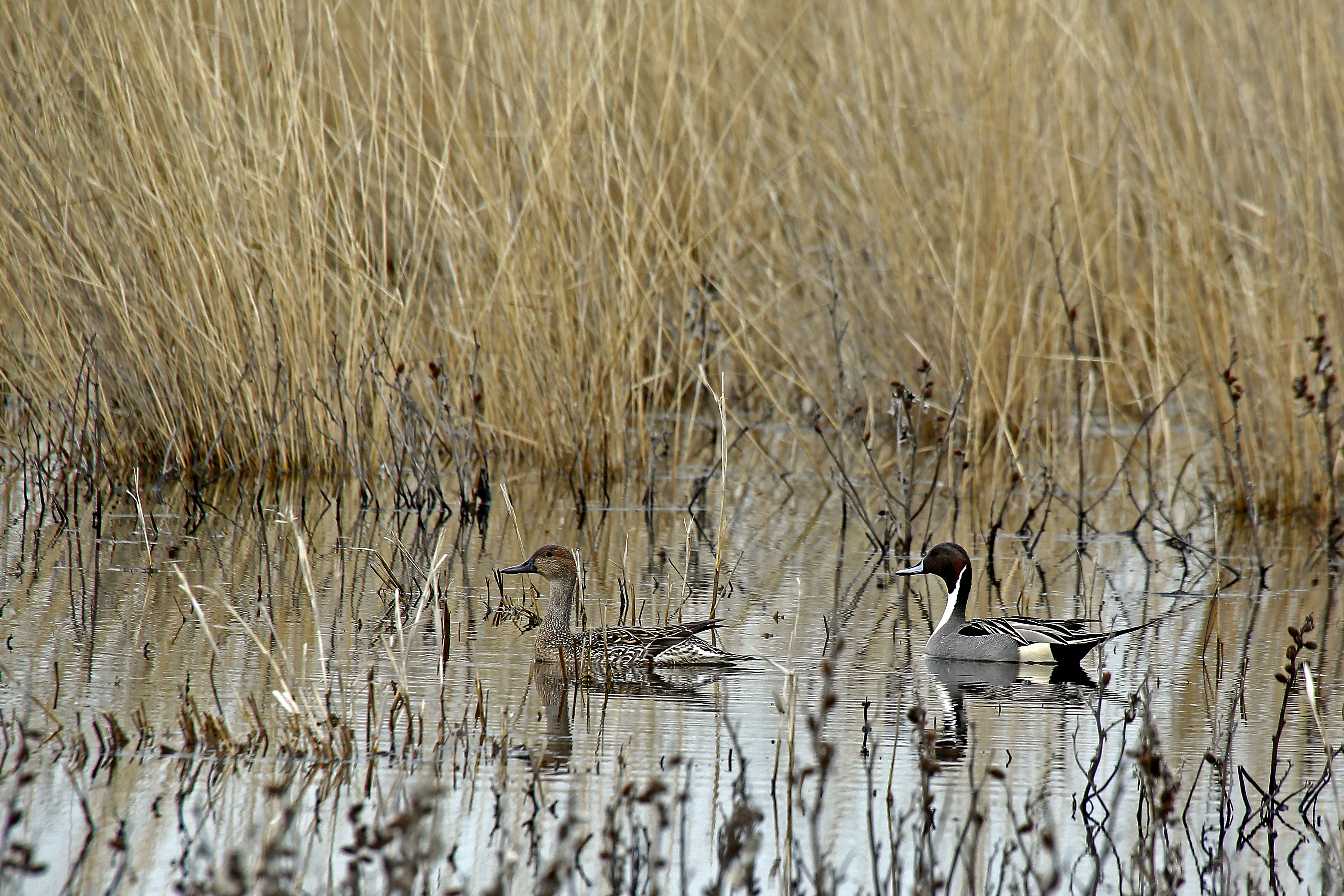 Northern pintail pair in wetland