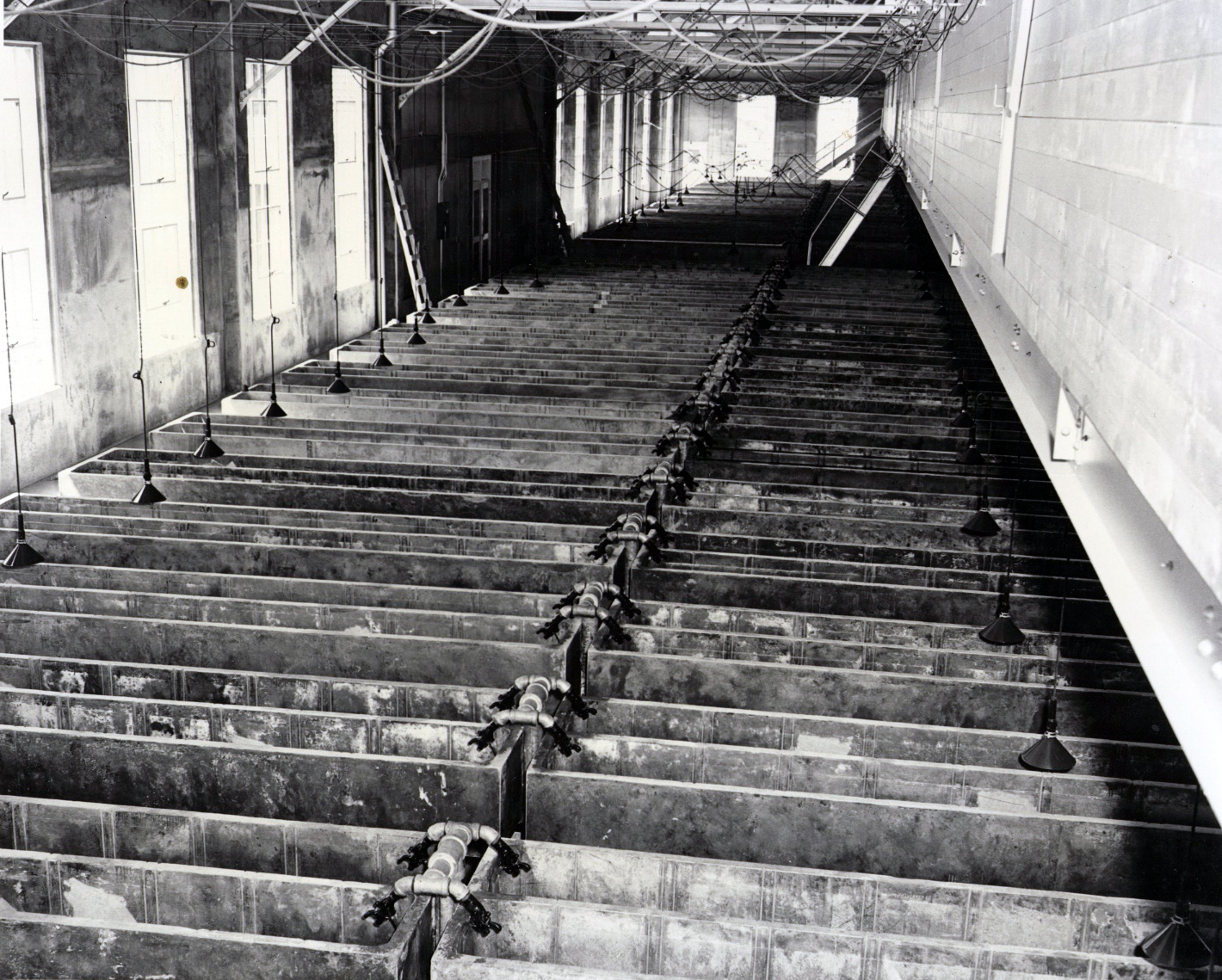 By May of 1940, 228 concrete hatching troughs were installed in the nursery building at Leavenworth National Fish Hatchery.