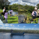 Display of students of the Miccosukee Tribe School assisting with the stocking of Florida gar and bowfin in Old Tamiami Canal in the Tribal Reservation Area, and Peninsular Florida FWCO, Welaka NFH and Loxahatchee NWR staff collecting fish on the refuge.