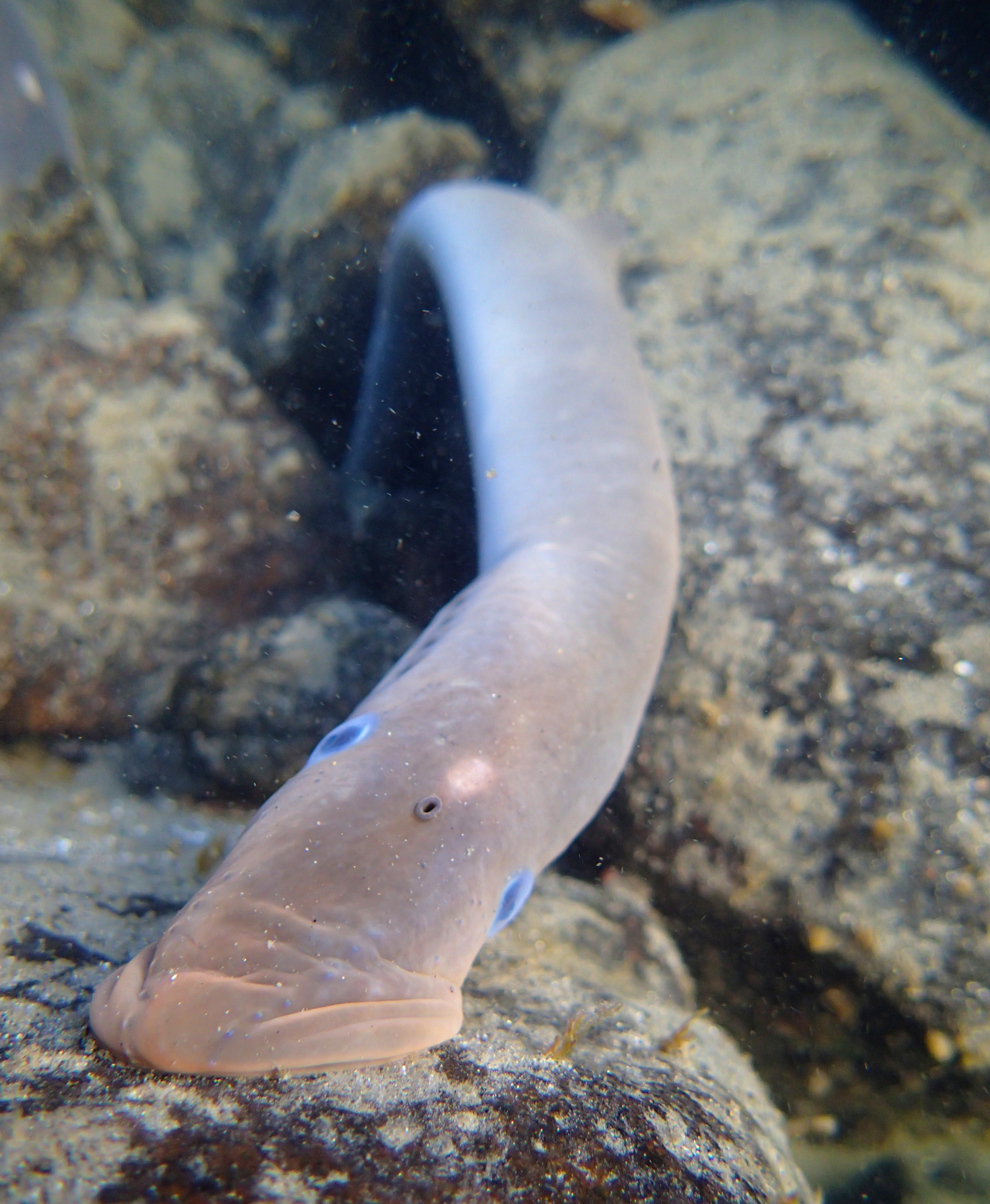 Adult Pacific lamprey make their way upstream by swimming and using their sucker mouths.