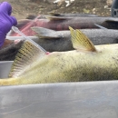 A Service Veterinarian collects ovarian fluid for virology. Testing salmon raised by Service National Fish Hatcheries or partner hatcheries for fish health and disease prevention is a critical component of the Pacific Region Fish Health Program .