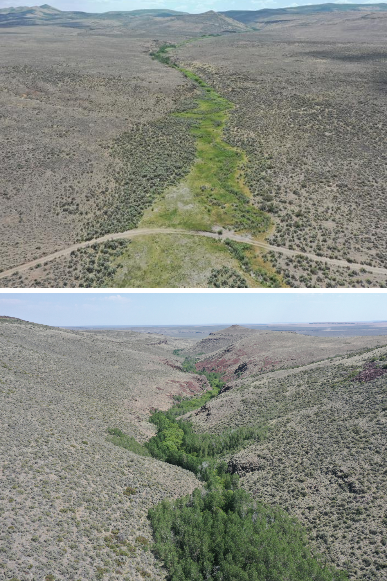Aerial imagery of middle and upper portions of Cottonwood Creek prior to restoration during June 2021