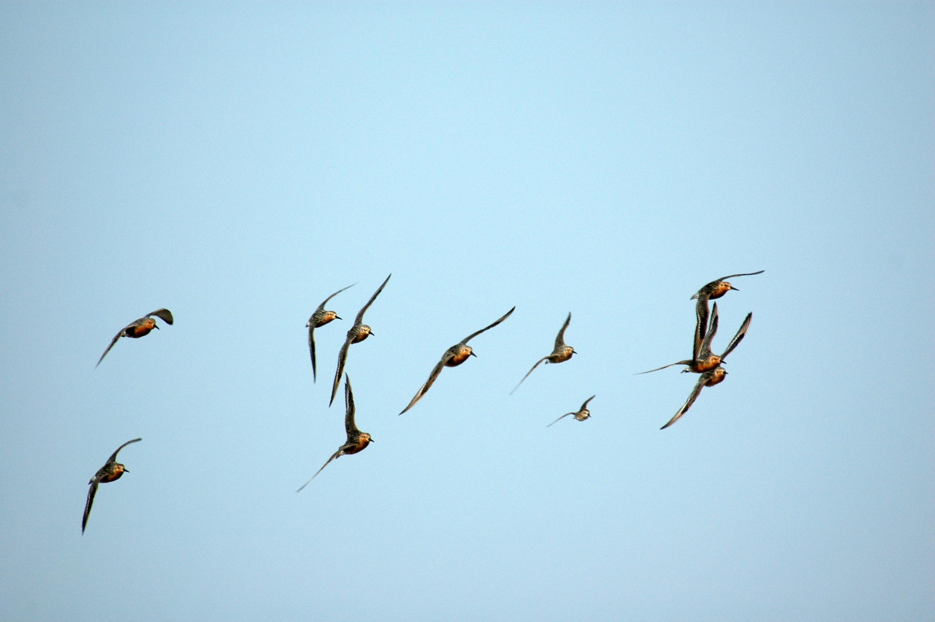 Red knots in flight