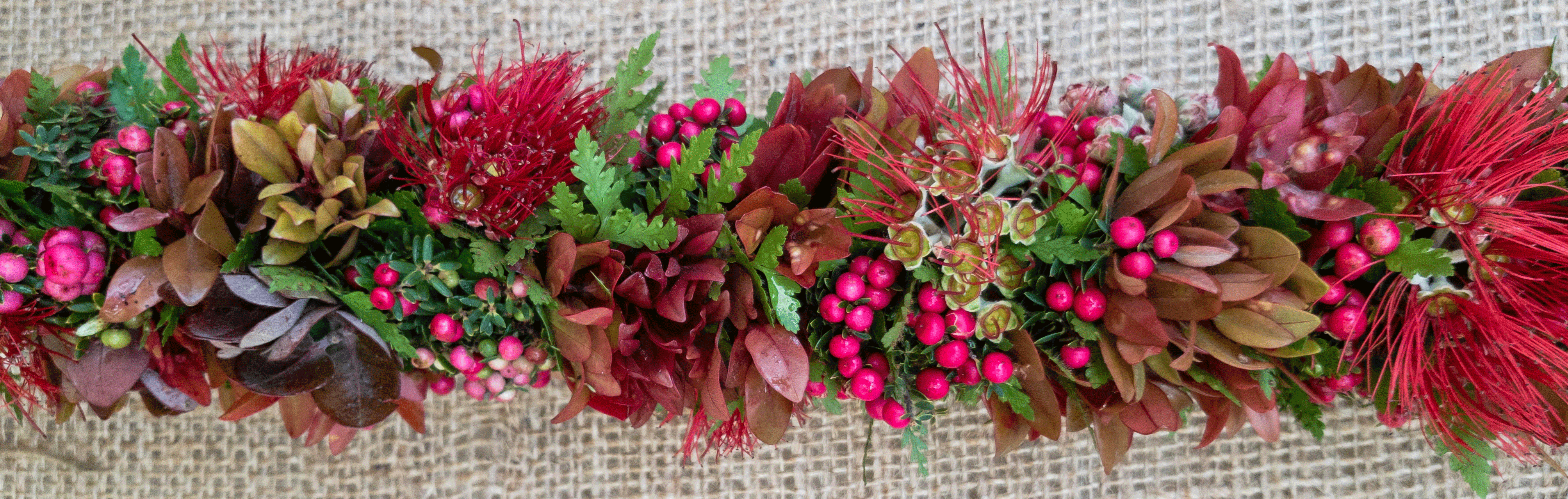 Lei made with lehua (Metrosideros polymorpha), liko (M. polymorpha), pūkiawe (Leptecophylla tameiameiae), and palapalai (Microlepia strigosa). Photo credit: Gregory Koob