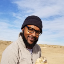 Dwane Binns holding black tailed prairie dog at Rocky Mountain Arsenal National Wildlife Refuge.