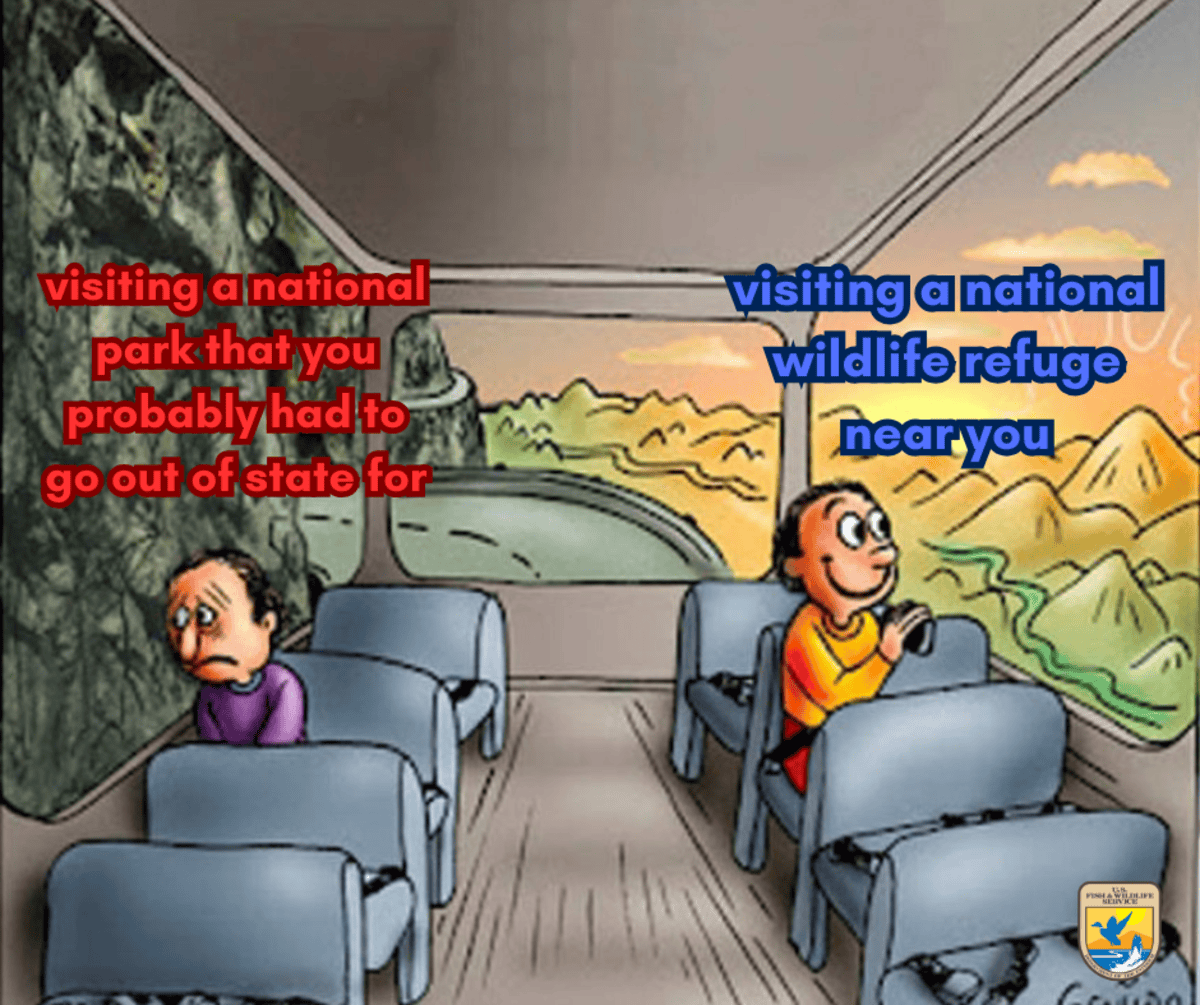 This meme teases the fact that there are national wildlife refuges in every state but national parks are only present in 30 states.