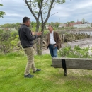 USFWS Assistant Regional Director of Fish and Aquatic Conservation Rick Jacobson and Supervisory Fish Biologist Peter Lamothe meet in front of the St. Croix River bordering the Maine Fish and Wildlife Conservation Office and Canada.