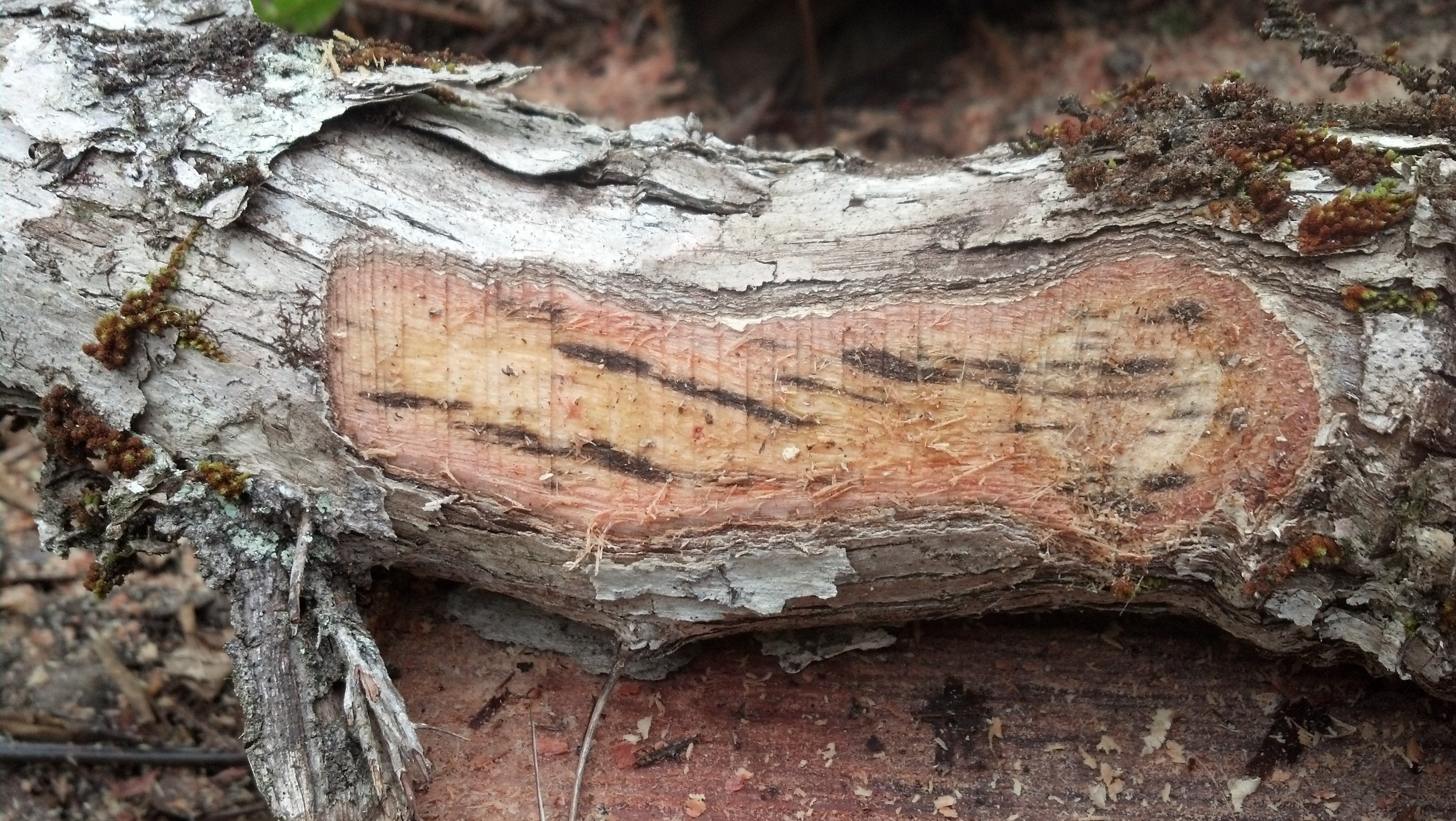 Ceratocystis staining in the sapwood of an ‘ōhi‘a tree. Photo credit: Marc Hughes.