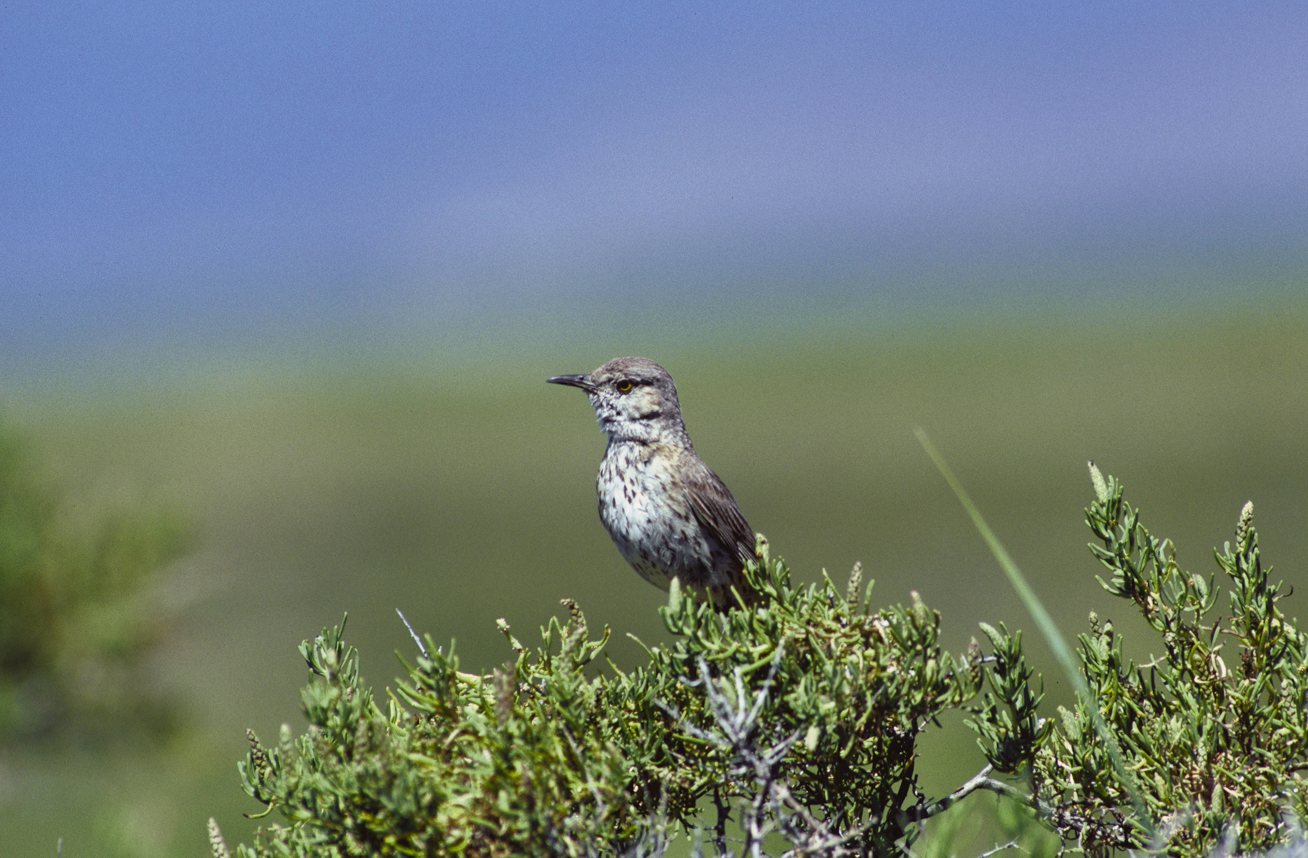 A close-up view of a Sage Thrasher photographed in the Lower Klamath National Wildlife Refuge located in California.
