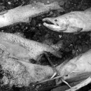 Where the water ends, the maggots begin. Sockeye Salmon decompose in and out of the water after spawning.