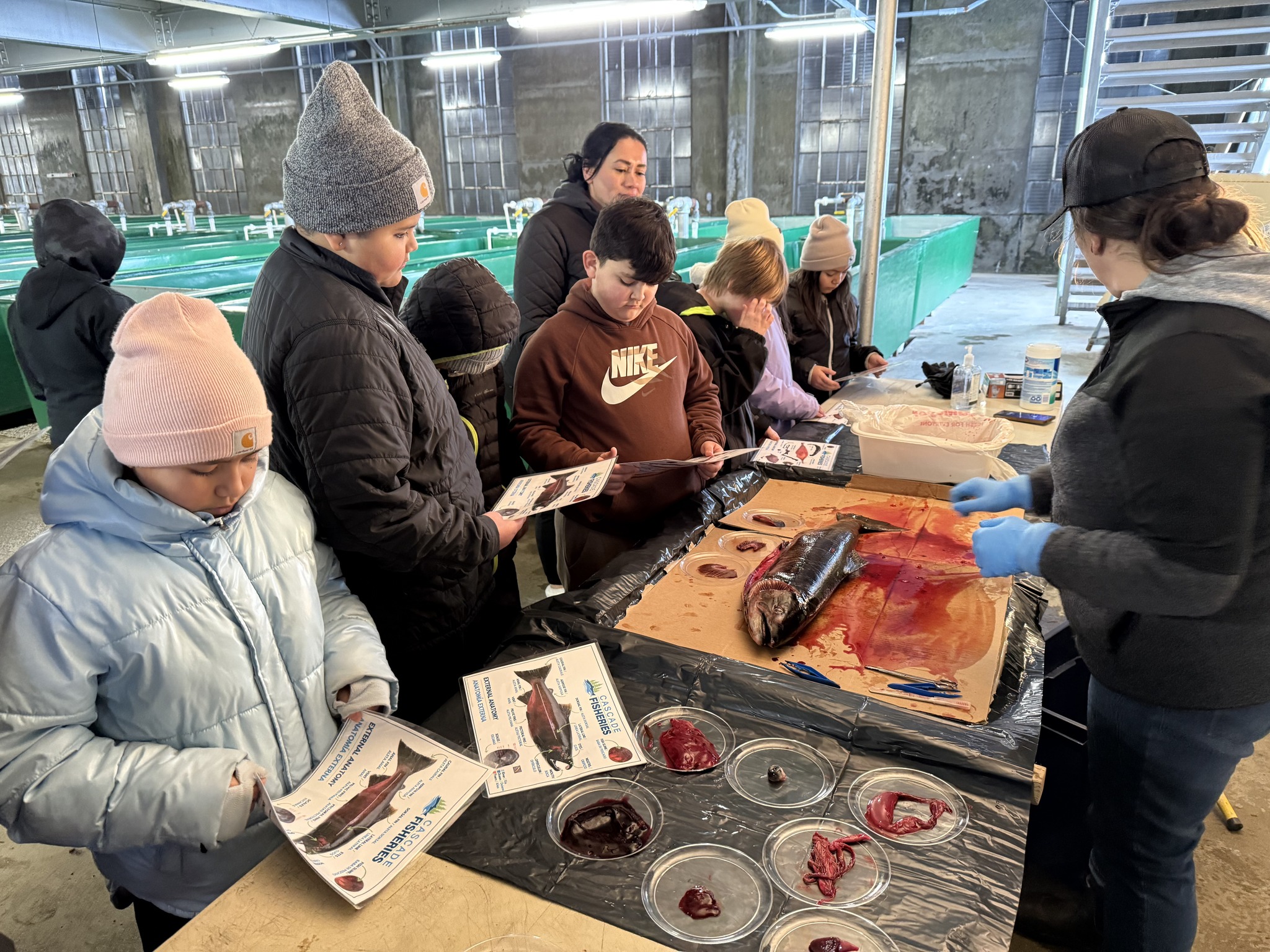Salmon dissection during snowshoes