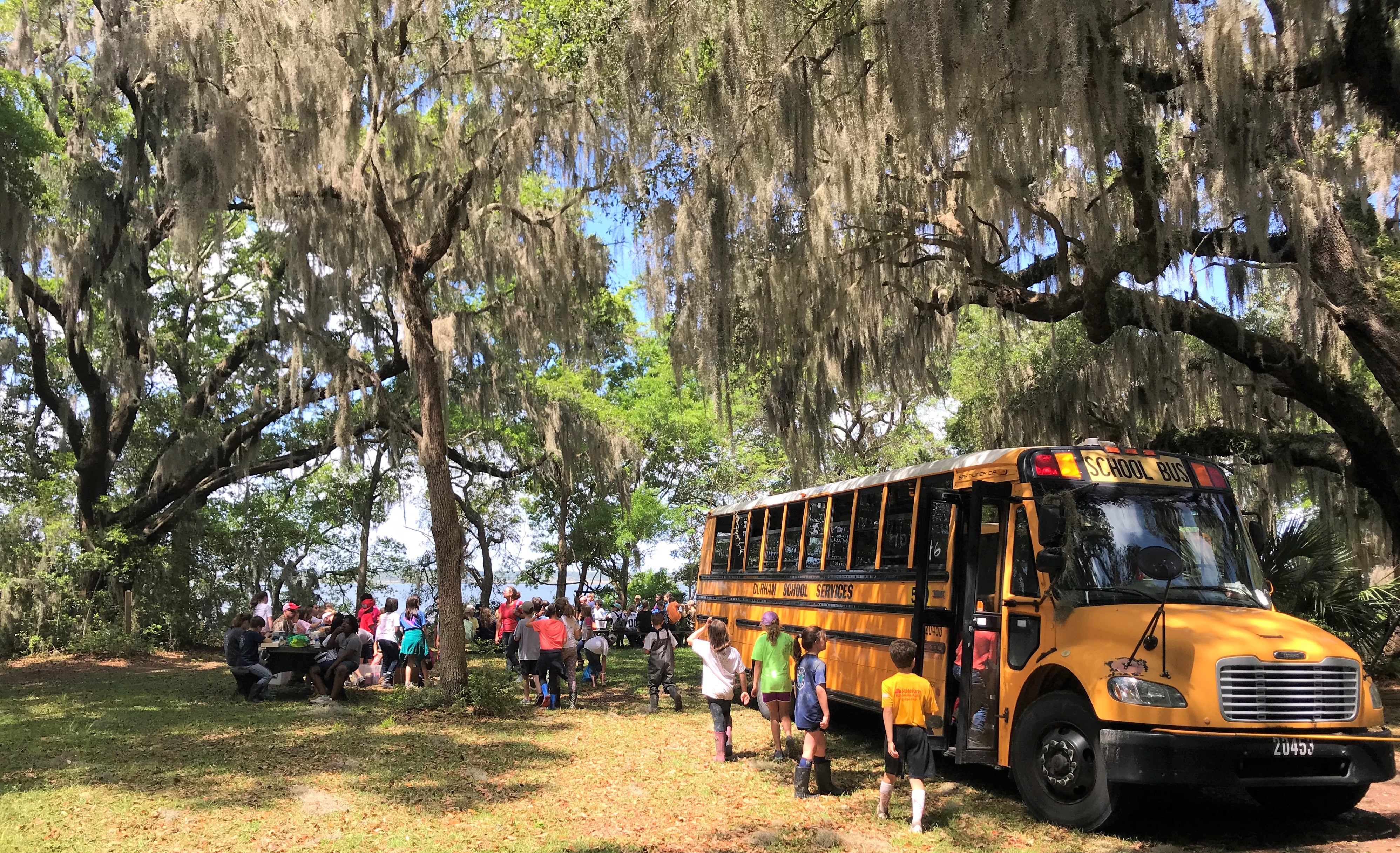 School kids getting ready to take a tour and learn about environmental conservation.