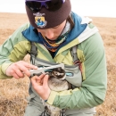 FWS Scientist taking measurements of a long-tailed ducks head and bill length in the field