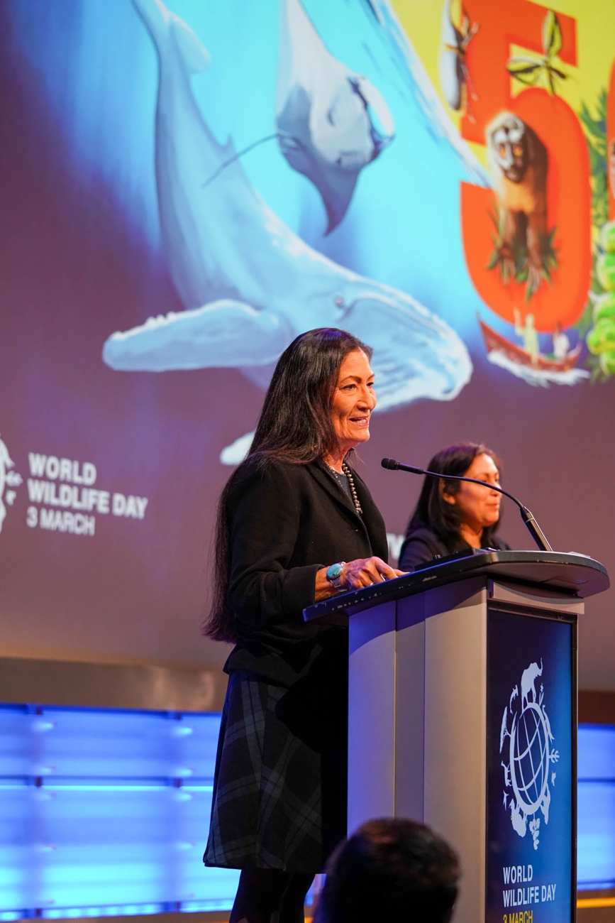 Secretary of the Interior Deb Haaland spoke at the World Wildlife Day and CITES’s 50th anniversary that was held at the National Geographic Society’s headquarters in Washington, D.C.