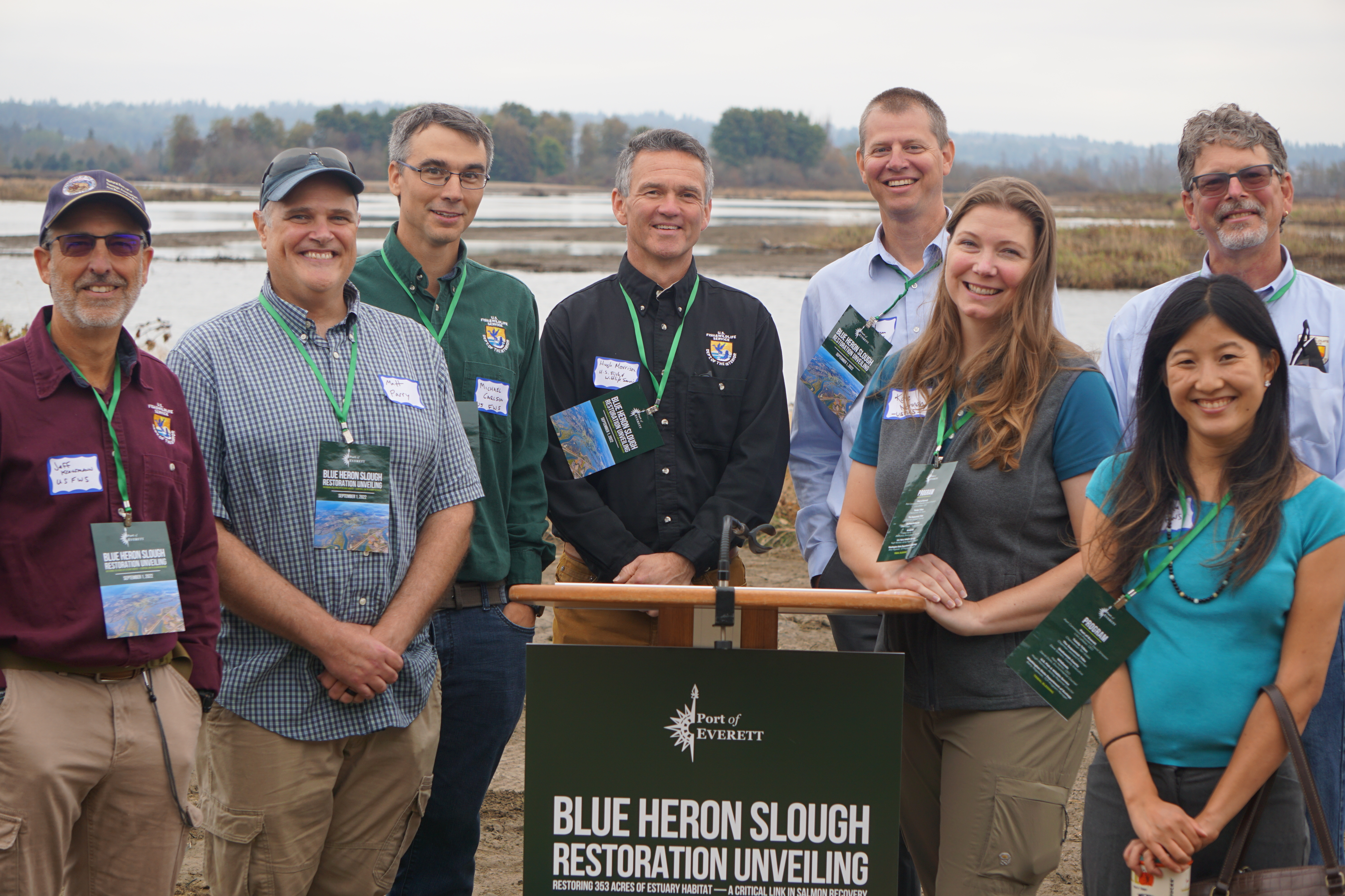U.S. Fish & Wildlife Service staff at the unveiling for the restoration of Blue Heron Slough near Everett, WA on September 1, 2022