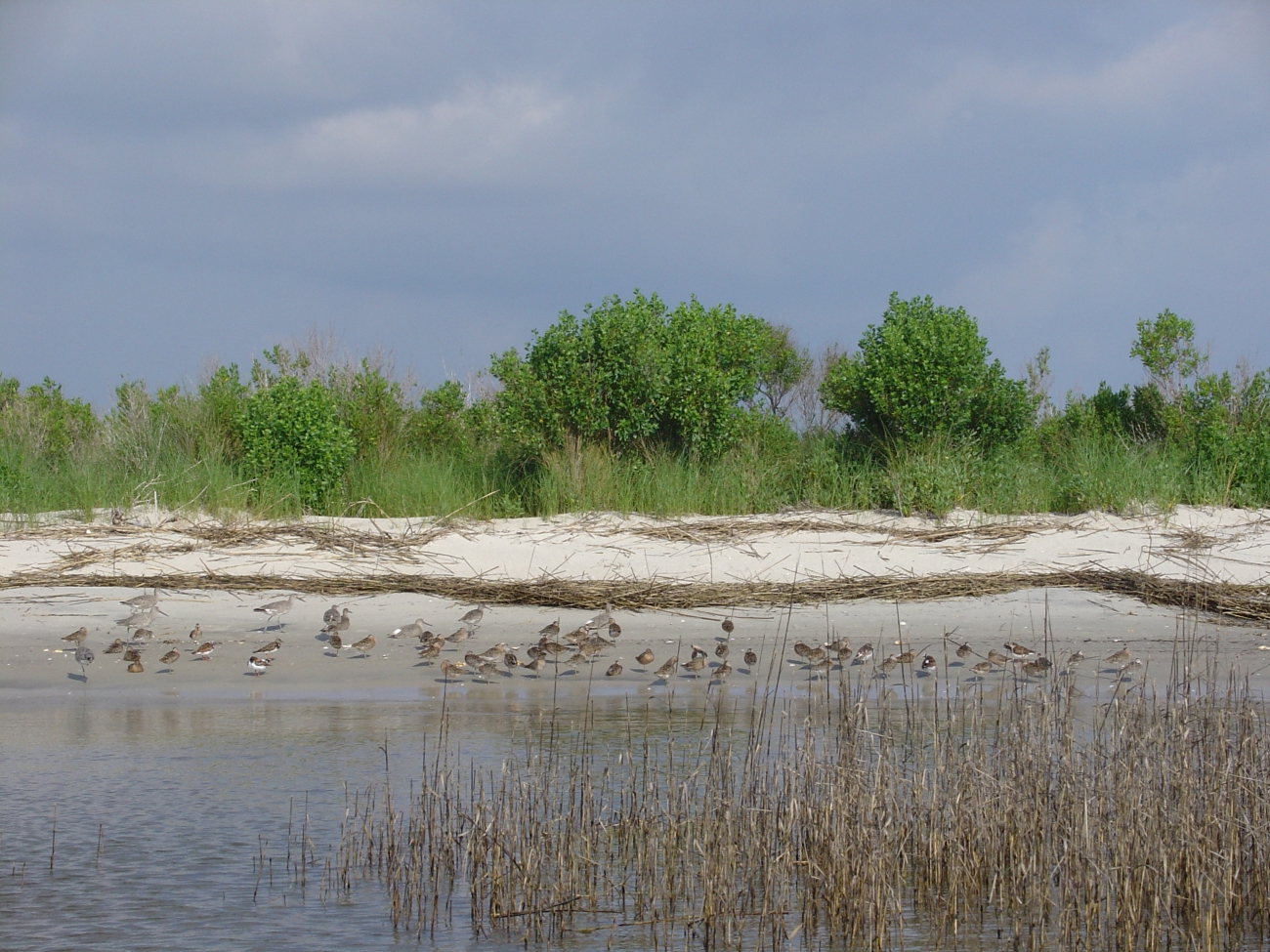 Shorebirds congregating on Wolf Island National Wildlife Refuge
