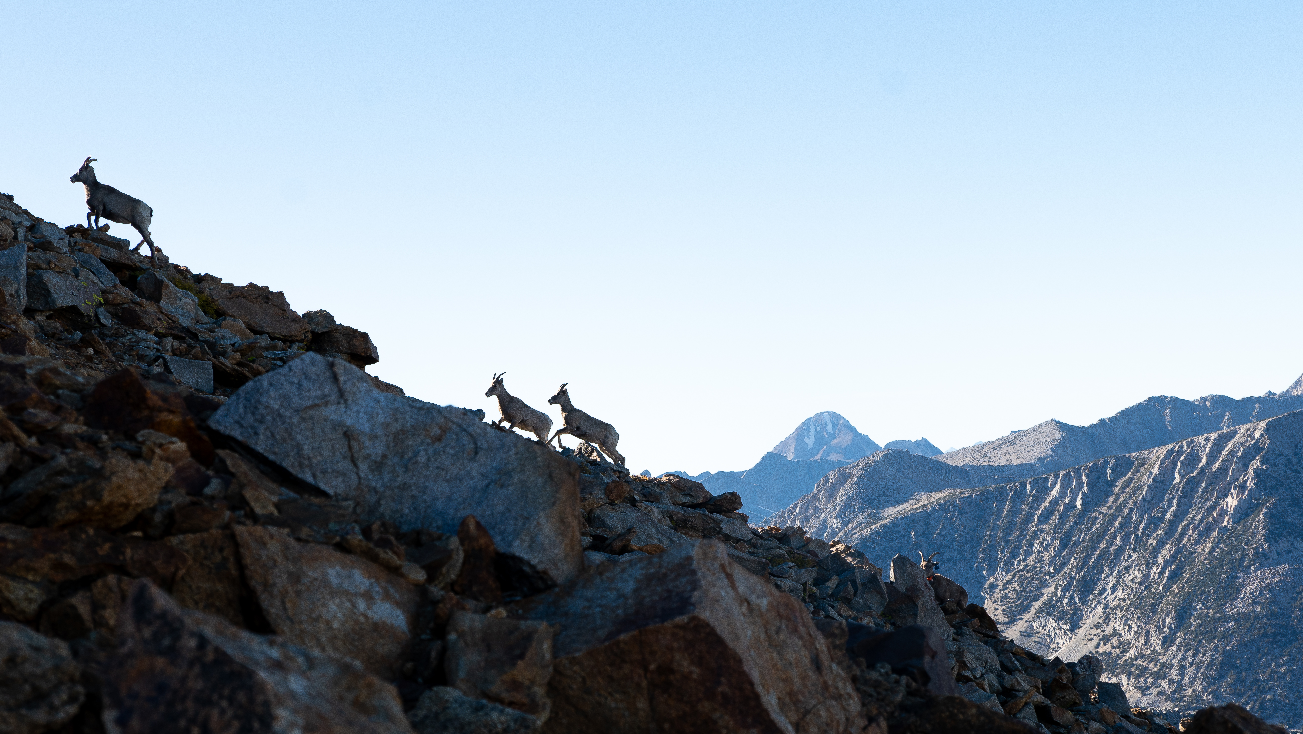 Sierra Nevada Bighorn sheep are federally listed as endangered. This subspecies of bighorn sheep has a historical range in the Sierra Nevada mountains from Sonora Pass in the north, to Olancha Peak in the south. These bighorn sheep live in elevations that range from 4,000-14,000 feet and have adapted to live in harsh mountain conditions. Predation, environmental factors, as well as concern of disease transmission from domestic sheep pose challenges to species recovery.
