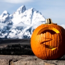 Carved pumpkin at the Snake River overlook in Grand Teton National Park.