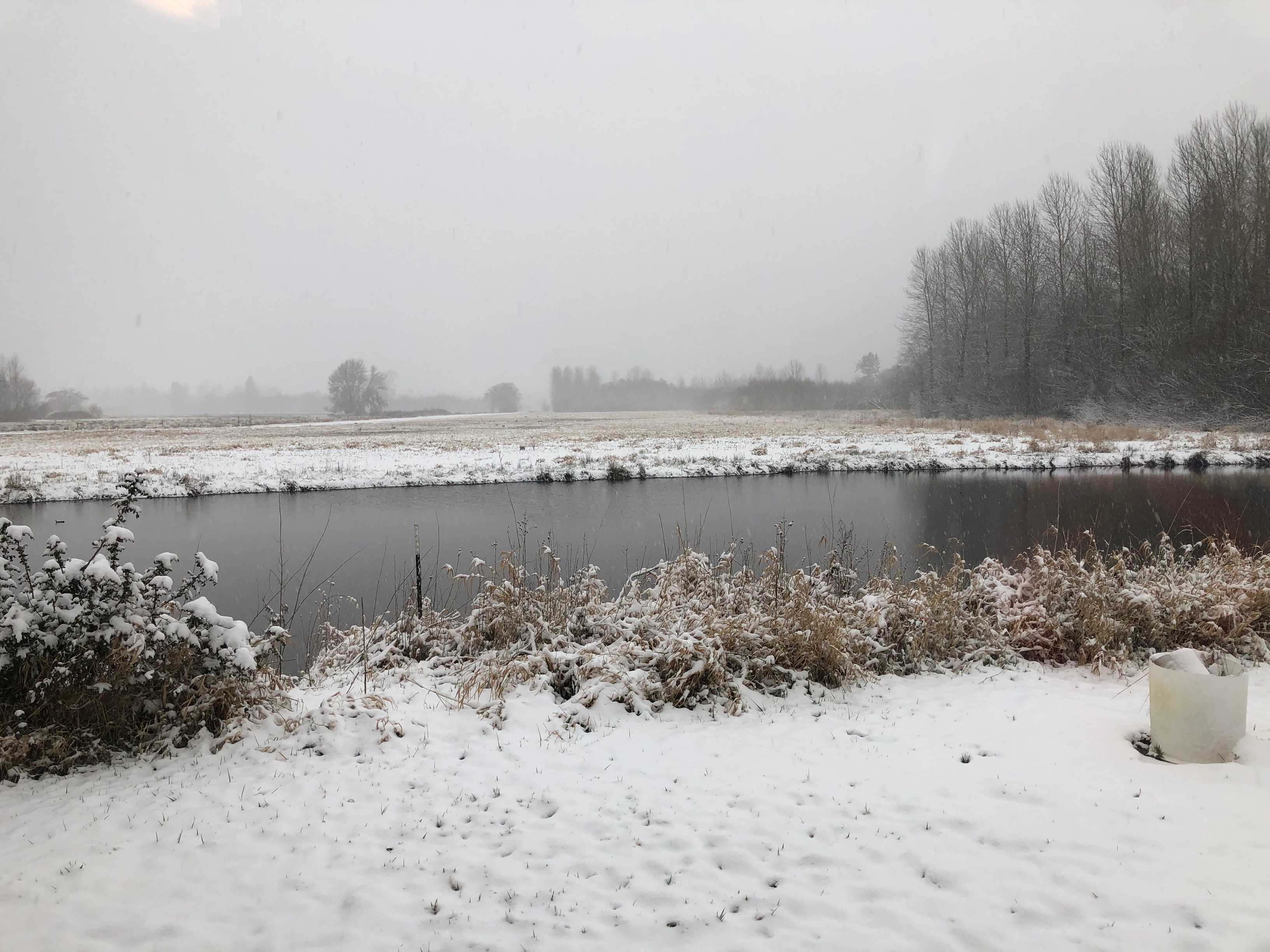 A snowy landscape at Julia Butler Hansen Refuge for the Columbian White-Tailed Deer in Washington state.