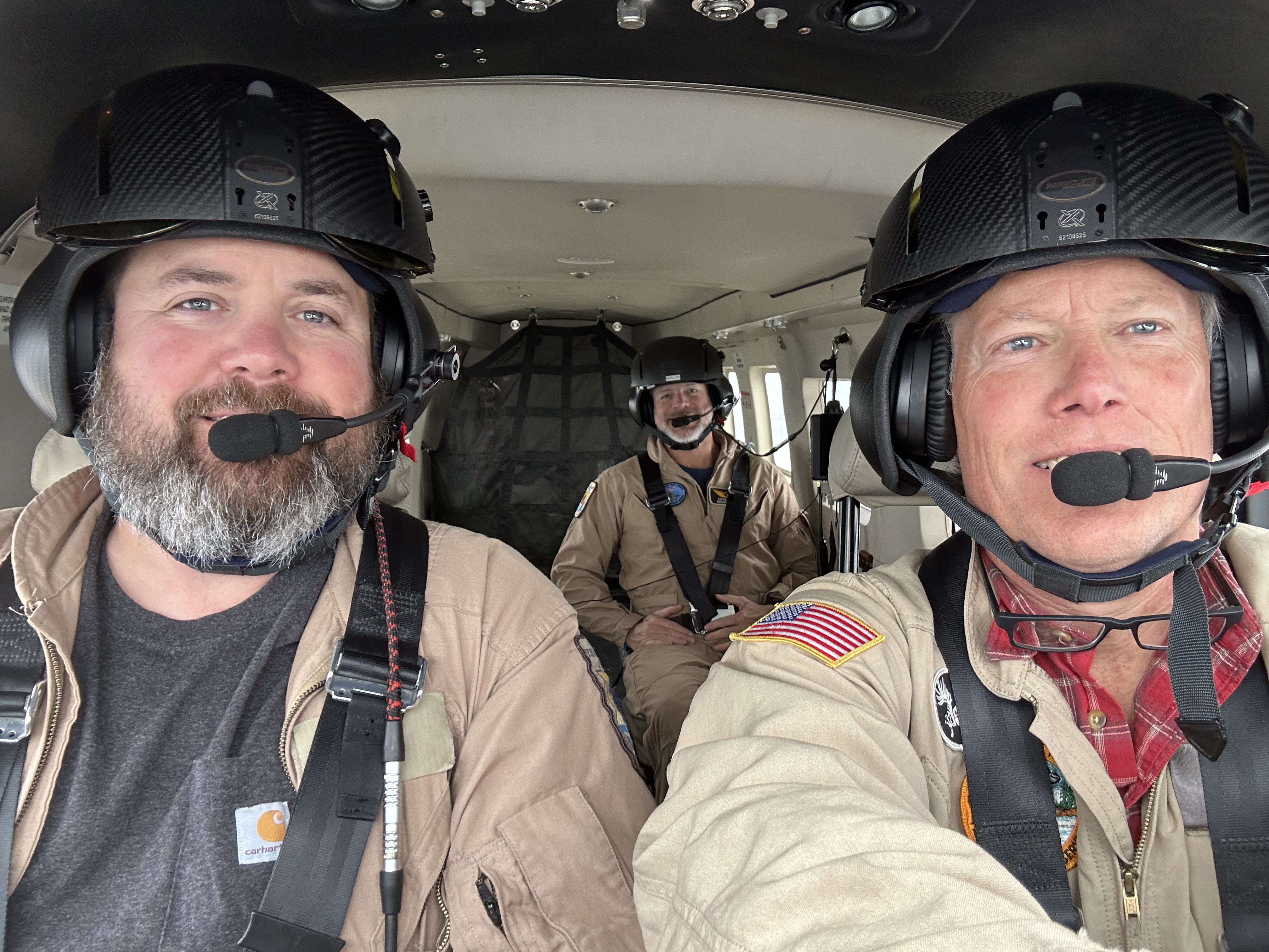 The Southern Saskatchewan air crew takes a selfie during the Waterfowl Breeding Population and Habitat Surveys. Left to right: Stephen Chandler, Stephen Barlow, and Phil Thorpe.