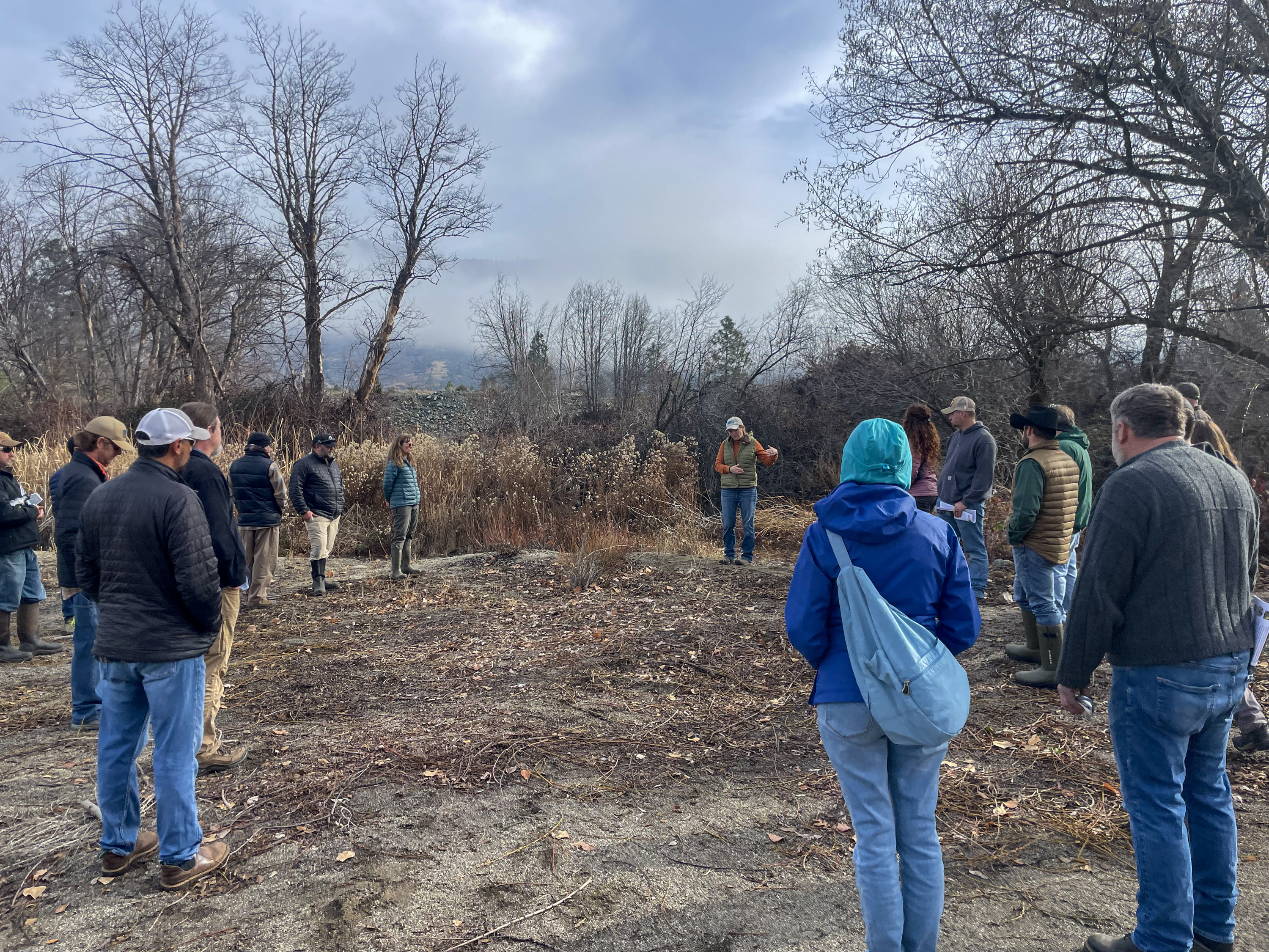 Staff from NOAA tour the Bipartisan Infrastructure Law funded Sugar Creek Coho Salmon Refugia Project. Photo courtesy of Scott River Watershed Council