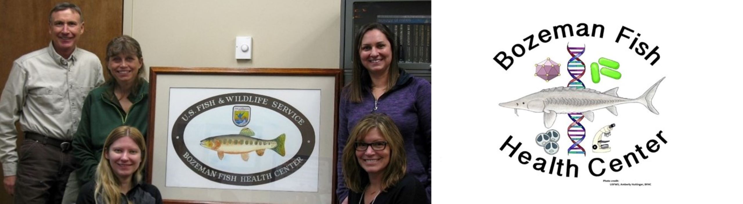 Bozeman Fish Health Center Staff photo and the Bozeman Fish Health Center Logo-Logo hand drawn and created by artist Amberly Huttinger