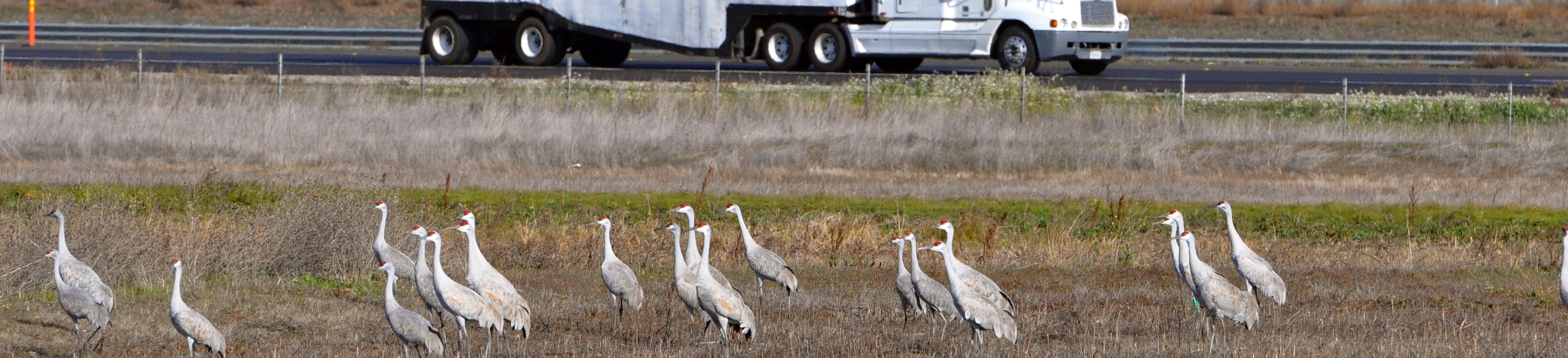Sandhill cranes at Stone Lakes National Wildlife Refuge along Interstate 5 south of Sacramento, California.