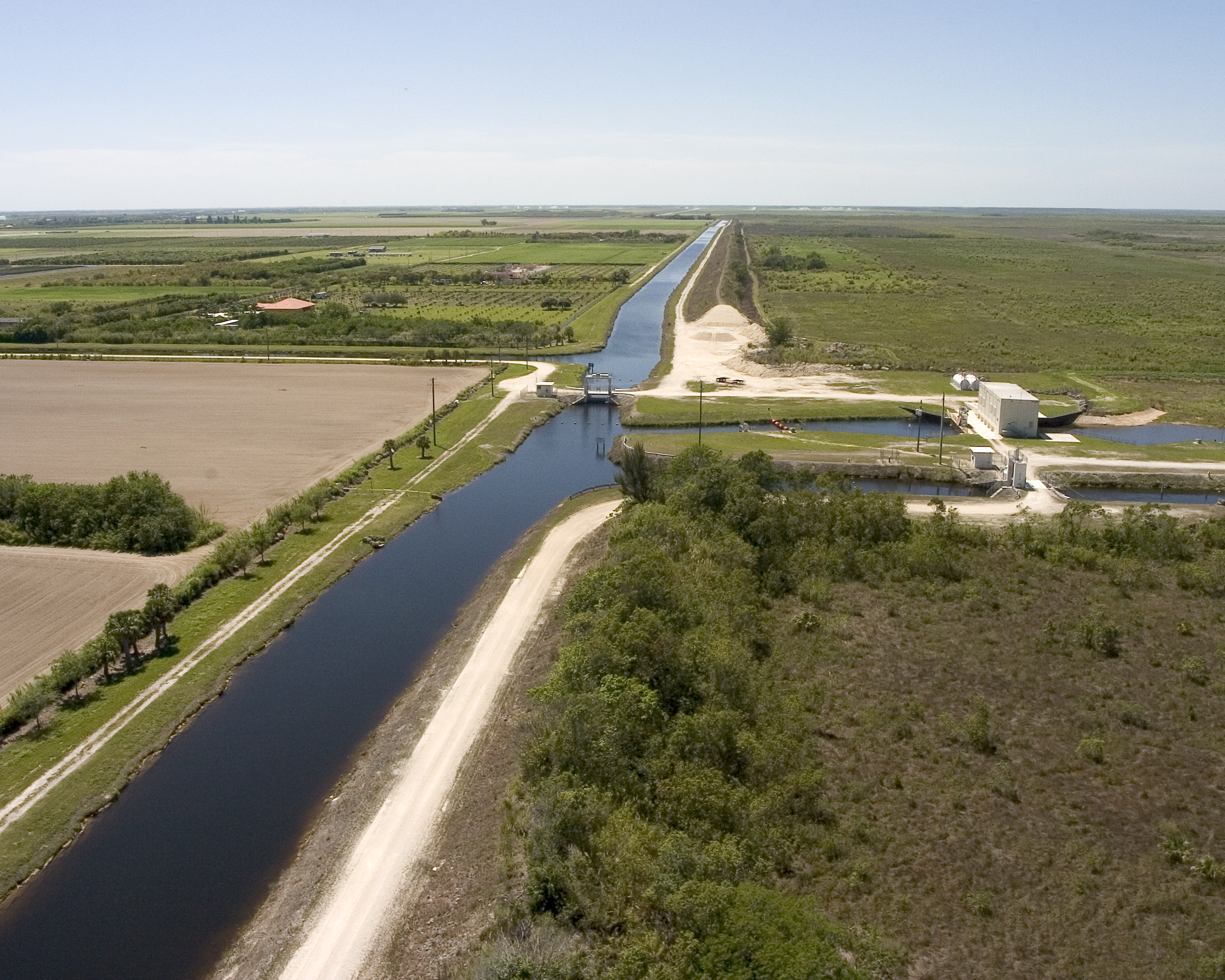 Straight water channel running across a south Florida landscape