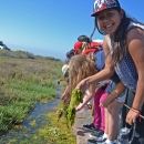 Elementary school students pick up algae at San Diego Bay National Wildlife Refuge.