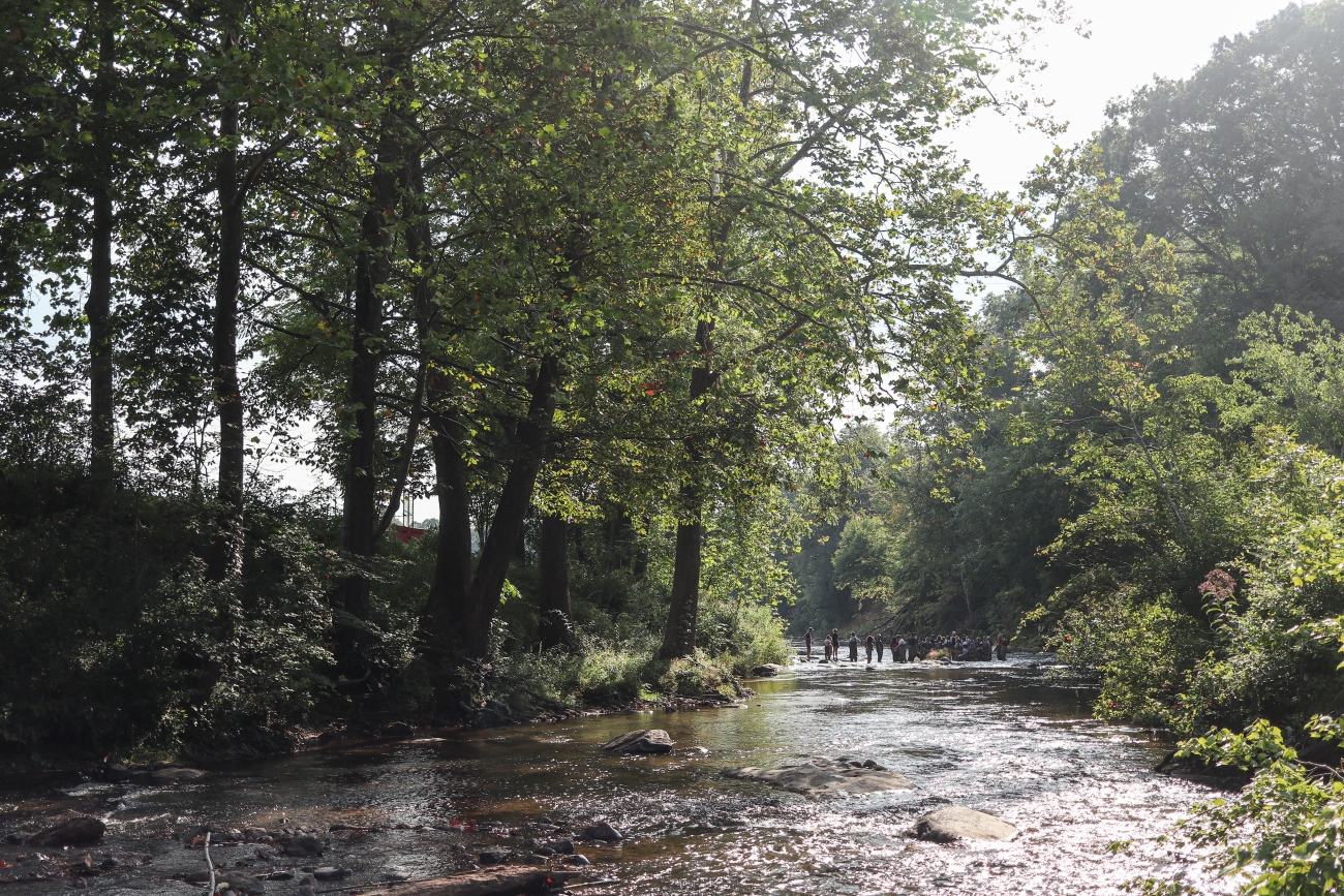 Students in the Pigeon River, North Carolina, prepare to collect fish as part of the 2023 Kids in the Creek educational event.