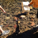 A pair of students select a place to put their kick net in an effort to collect aquatic invertebrates