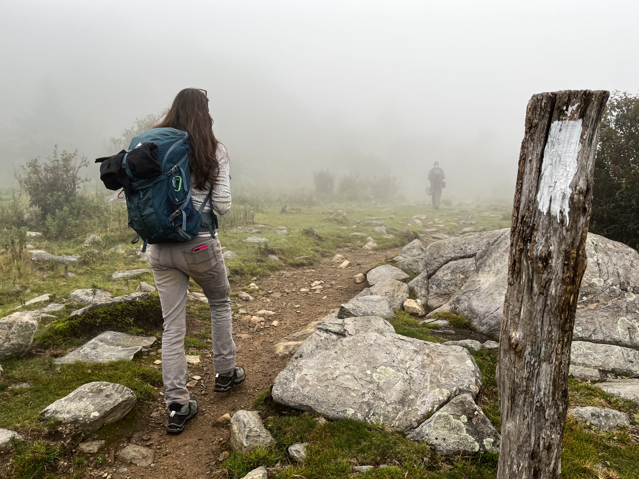 Sue Cameron and Brian Bockhahn hike the Appalachian Trail en route to survey for spruce-fir moss spiders at Mt. Rogers, Virginia