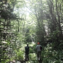 Service biologist Sue Cameron and Joe Franklin, N.C. Wildlife Resources Commission forester, head into the backcountry of North Carolina's Black Mountains.