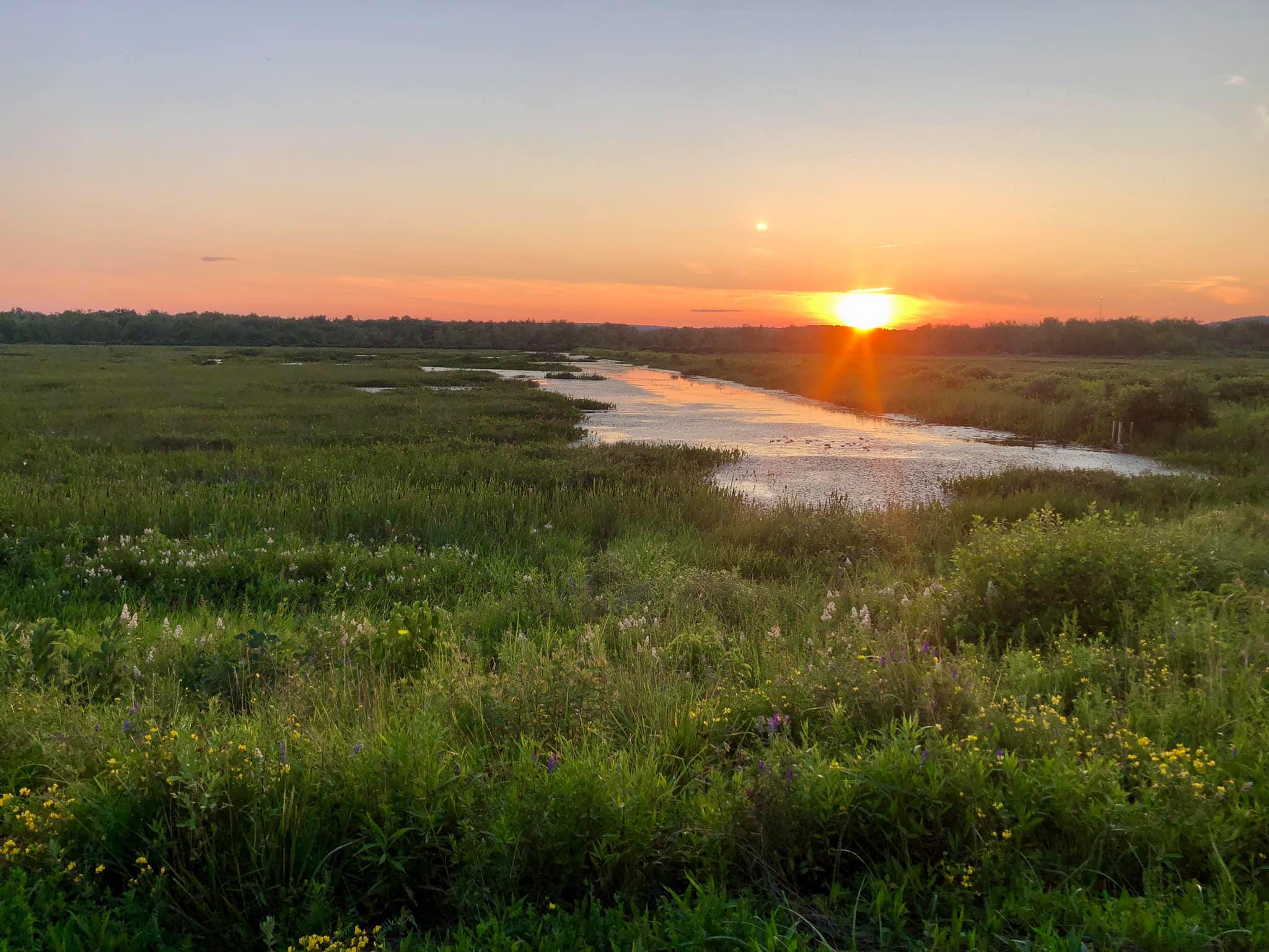 Sunset over wetlands at Moosehorn National Wildlife Refuge in Maine.