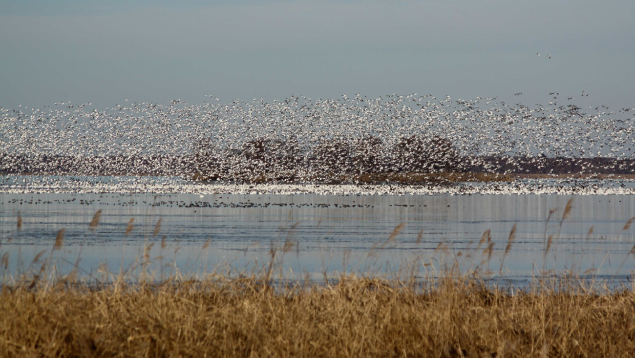 Hundreds of swans take flight at Lake Mattamuskeet at Mattamuskeet National Wildlife Refuge in North Carolina.