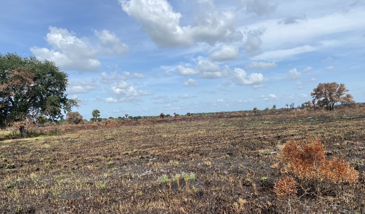 A newly burnt field at Everglades Headwaters refuge.